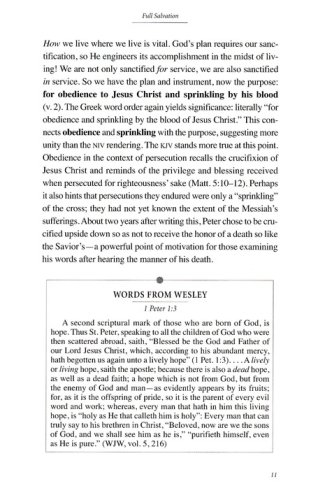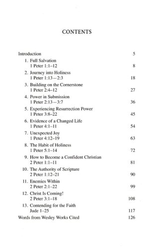 This book in the Wesley Bible Studies series provides a thoughtful and powerful survey of key Scriptures in 1-2 Peter and Jude. It combines accessible commentary from contemporary teachers, with relevantly highlighted direct quotes from the complete writings and life experiences of John Wesley, along with the poetry and hymns of his brother Charles. And for each study, creative and engaging questions and activities likewise foster deeper fellowship and growth.