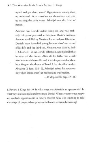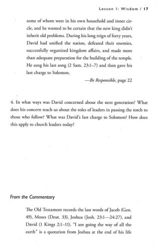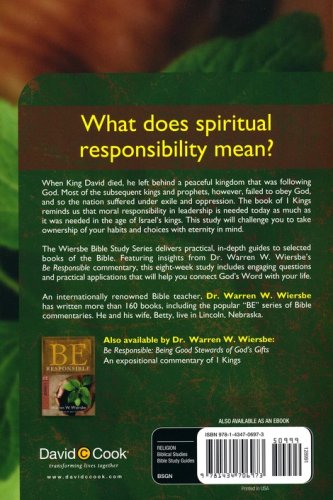 The Wiersbe Bible Study Series delivers practical, in-depth guides to selected books of the Bible. Featuring insights from Dr. Warren W. Wiersbe’s Be Responsible commentary, this eight-week study includes engaging questions and practical applications that will help you connect God’s Word with your life.