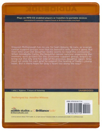 When Annabelle Curtis, the beautiful cancer survivor organizing the memory quilt project for the Ovacome support group, begins to bring out the silly and fun side of his precious daughter again, Gray must set aside his own grief to support the healing of Sadie's young heart. But is there hope for Gray's heart too along the way?