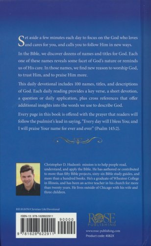In the Bible we discover dozens of titles and names of God, and now you can cherish them all in one devotional! Each name reveals an important attribute of God's nature or reminds us of His care for us. In those names we find new reasons to worship God, to trust Him, and to praise Him more. Dive into 100 easy-to-read devotions that are packed with fresh insights and deepen your understanding of who God is every day!