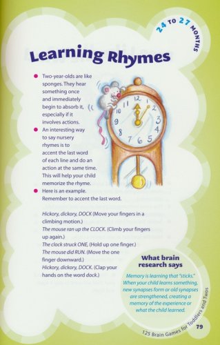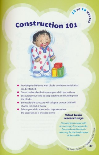 A young child’s brain grows at a phenomenal rate in the first years of life. Revised and updated to reflect the latest research on how children learn, 125 Brain Games for Toddlers and Twos is packed with everyday opportunities to contribute to brain development. Each game is accompanied by an annotation on the latest brain research and how the activity promotes brain power in the critical period from twelve to thirty-six months.