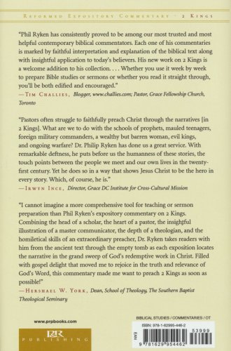 The book of 2 Kings is the tale of two kingdoms—Israel and Judah—and also the story of a prophet greater than Elijah, Elisha son of Shaphat. Although the book’s overarching narrative is one of tragic decline leading to exile, hope remains as God again and again fulfills his promise to never to let go of the line of David. In this Reformed Expository Commentary, Philip Graham Ryken traces the overarching narrative of 2 Kings, connects it to Christ, and explores its applications for ordinary Christians in today’s world. This historical book has everyday relevance as it shows God’s concern for people in serious need as well as the near- and long-term consequences of idolatry. Most important, it prepares us to see our need for the true and greatest Prophet and King.