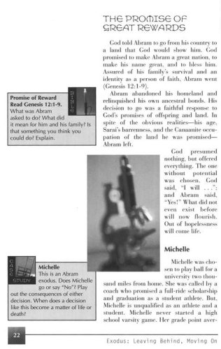 • Bible background on a respective image: covenant, exodus, community, and faith