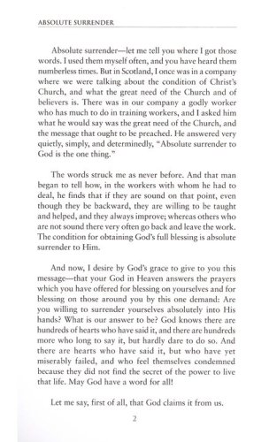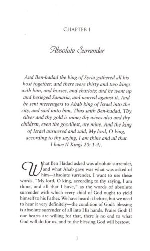 "I desire by God's grace to give you this messagethat your God in heaven answers the prayers which you have offered for blessing on yourselves and for blessing on those around you by this one demand: Are you willing to surrender yourselves absolutely into His hands?"