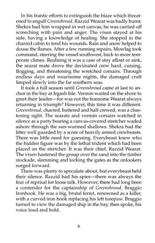 Redwall Abbey has never seen a creature more evil or more hideous than Razzid Wearat. Captain of the Greenshroud, a ship with wheels that can sail through water as well as the forest, this beast is a terror of both land and sea, traveling Mossflower Country, killing nearly everything-and everyone- in his path. And his goal? To conquer Redwall Abbey.