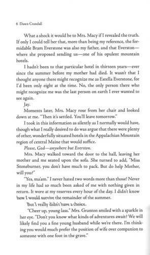 For her own protection following the murder of her brother Will, hotel heiress Estella Everstone assumes the alias of Elle Stoneburner and takes a job as companion to an elderly widow. Never did she imagine that her position would lead her back to her beloved Everston, a picturesque resort property tucked away in the rugged mountains of Maine. Living below her station in a guise of anonymity has its struggles, but her spirits are buoyed by a newfound friendship with the hotel manager, Dexter Blakeley.