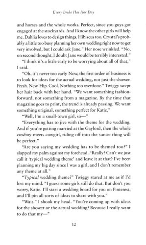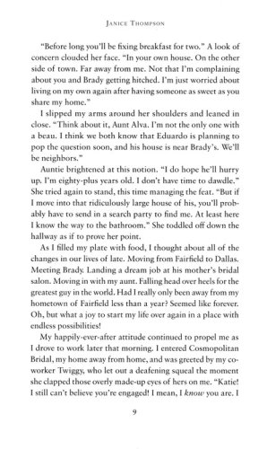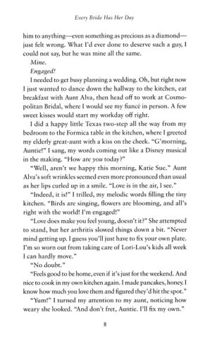 Katie Fisher is ecstatic. Pro basketball star Brady James has proposed, and she can't wait to start planning their life together. She's confident she'll make it down the aisle this time–but it still may be easier said than done. A high-society Houston bride has Katie and the Cosmopolitan Bridal team scrambling to get the perfect dress done in time for her spectacular wedding. Meanwhile, Katie finds herself bombarded with everyone's competing visions regarding her own special day–and she's beginning to worry that her own ideas will get lost in the crossfire. Will she ever manage to settle all of the details for her perfect day? Or will bridal shop chaos and overzealous friends and family make a mess of everything?