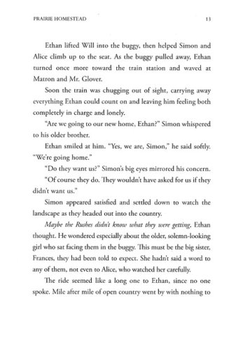 Since their mama died and their pa left, Ethan, Alice, Simon, and Will Cooper have not known much of a home. But now that the orphan train has taken them to Mr. and Mrs. Rush in Nebraska, their dreams of home may become a reality.