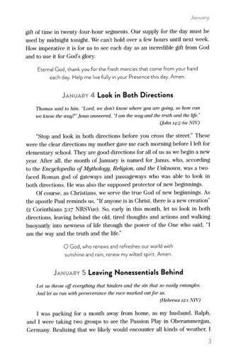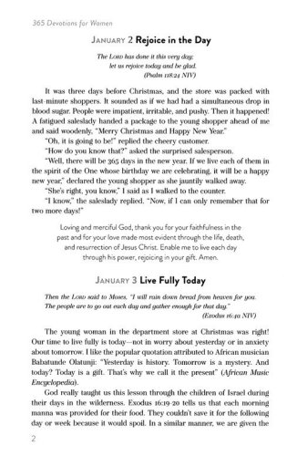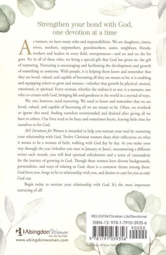 Strengthen your bond with God, one devotion at a time. As women, we have many roles and responsibilities. We are daughters, sisters, wives, mothers, stepmothers, grandmothers, caregivers, working women, leaders, teachers, pastors, and pastors’ wives, neighbors, friends—and the list goes on. Yet in all of these roles, we bring a special gift that God has given us: the gift of nurturing—helping others feel loved, appreciated, and capable of achieving all they are meant to be. We, too, however, need nurturing. Often, we forget or ignore this fact, finding ourselves overextended and drained after giving all we have without taking time for our own needs. Our lives tend to be busy, hectic, and sometimes even frenzied, leaving little time for ourselves or God. Yet God longs to wrap loving arms around us and give us rest, encouragement, hope, strength, peace, and joy. God is the only One who can fill us and make us whole. 365 Devotions for Women is written to help you focus on your relationship with God. Twelve different Christian women share their reflections on what it means to be a woman of faith, walking with God day by day. As you go through the year (whether you start in January or June), encountering a different writer each month, you will find spiritual refreshment and a sense of camaraderie for the challenge of giving your relationship with God the time and attention it deserves. Though these women have diverse backgrounds, personalities, and ways of relating to God, they have a common theme: God loves you and longs to be in relationship with you. The contributors are Nell W. Mohney (January), HiRho Park (February), Cynthia Gadsen (March), Kelly Clem (April), Lillian C. Smith (May), Nancy Nikolai Shedden (June), Anne Hagerman Wilcox (July), Marie Schockey (August), Hilda Davis (September), Sallie Dye (October), Monica Johnson (November), and Ellen Gray (December) Begin today to nurture your relationship with God. It’s the most important nurturing of all!