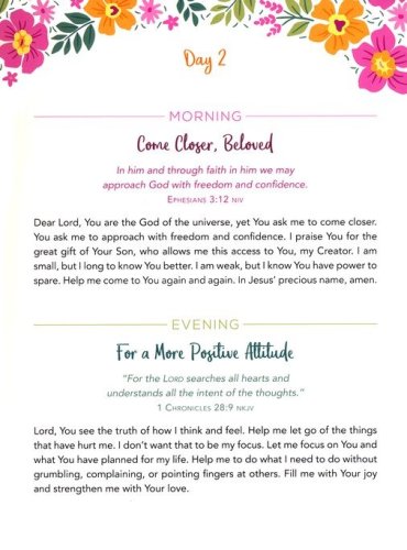 The all-powerful God we serve is interested in what you have to say! . . . 365 Encouraging Prayers for Morning & Evening is a daily devotional prayer book that serves as a lovely reminder for you to bring any petition before your heavenly Father. Featuring just-right-sized prayers arranged into morning and evening readings—including topics like Grace, Blessings, Joy, Serving, Faith, Patience, Love, and many more, this book is perfect for anyone seeking biblical encouragement. Each prayer is perfectly paired with a relevant scripture selection—a fabulous way for you to begin and end your day in quiet fellowship with your heavenly Father.