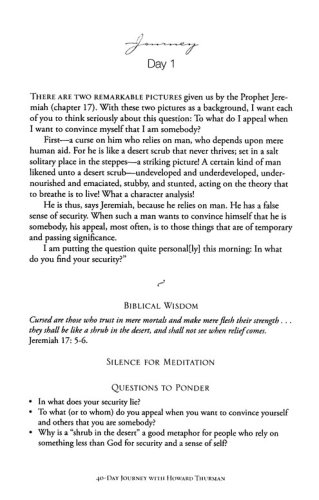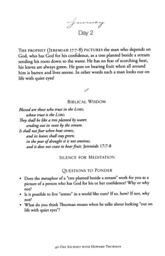 Howard Thurman was an influential American author, philosopher, theologian, educator, and civil rights leader. Strongly influenced by his grandmother, a former slave, who raised him and a Quaker mystic under whom he studied, Thurman adopted a philosophy of activism rooted in faith, guided by spirit, and maintained in peace. Editor Donna Schaper selects forty inspiring passages from the works of this spiritual advisor to Dr. Martin Luther King, Jr. to accompany readers on their own spiritual journeys. Ideal for traveling through the seasons of Advent and Lent.