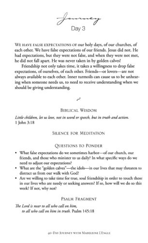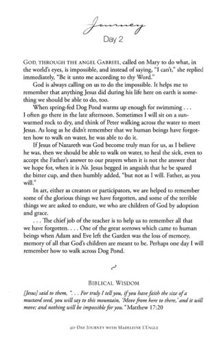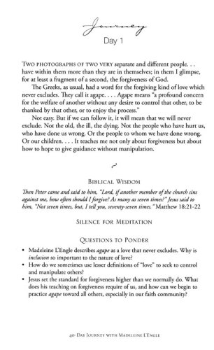 Includes a short introduction to L' Engle's life and work, questions to draw the reader into her spiritual world, journaling suggestions and daily prayers. This 40-day journey is an invitation to personal meditation and/or group discussion. An inspiring journey to take at any time, especially through the seasons of Advent and Lent.
