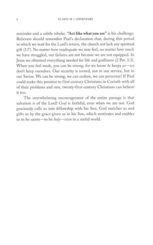 40 Days in 1 Corinthians is part of a series of devotionals written for any Christian desiring to deepen his or her understanding of Scripture.