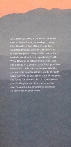 The practice of developing intentional faith habits is not a natural tendency. It requires focus, discipline, prayer, and persistence to grow in our walk with God. We may have great intentions, but often the busyness and chaos of everyday life force our spiritual growth to take a back seat. Fortunately, 40 Days of Intentional Living offers both a practical guide and an inspiring resource to deepening your faith.