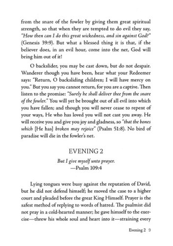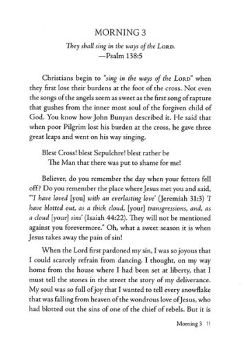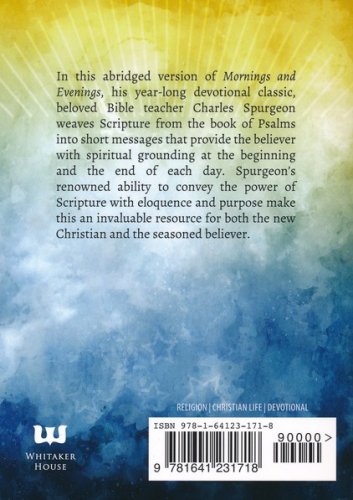 In this abridged version of Mornings and Evenings, his year-long devotional classic, beloved Bible teacher Charles Spurgeon weaves Scripture from the book of Psalms into short messages that provide the believer with spiritual grounding at the beginning and the end of each day. Spurgeon's renowned ability to convey the power of Scripture with eloquence and purpose make this an invaluable resource for both the new Christian and the seasoned believer.