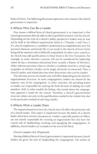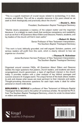 Arranged in a Q & A format, this volume tackles the major questions that pastors, church leaders, and students ask about congregational church government, a topic of much interest in the church today. It provides readers with a clear analysis of key biblical passages, succinct answers (4-8 pages each), and discussion questions. The unique format of the book allows the reader to pick and choose what issues are most pertinent to their interests and needs.