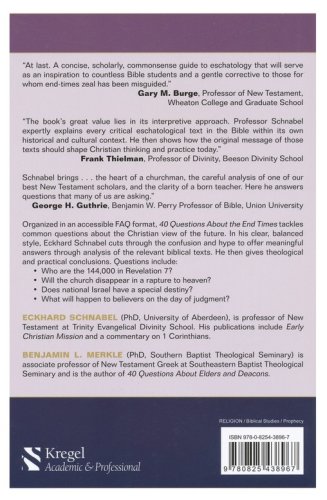 The result is an even-handed treatment that avoids sensationalism and a "newspaper headline" approach to prophecy, that is, interpreting prophecy according to current events. Rather, Schnabel carefully studies the biblical text in light of its first-century context and draws biblically-based conclusions.