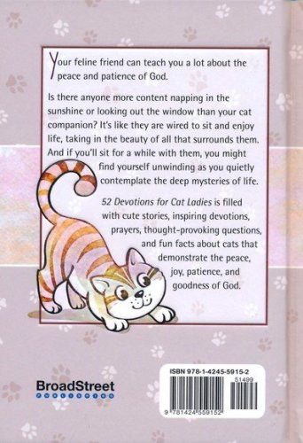 52 Devotions for Cat Ladies is filled with cute stories, inspiring devotions, prayers, thought-provoking questions, and fun facts about cats that demonstrate the peace, joy, patience, and goodness of God.