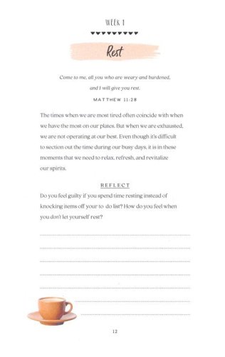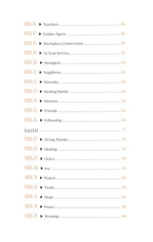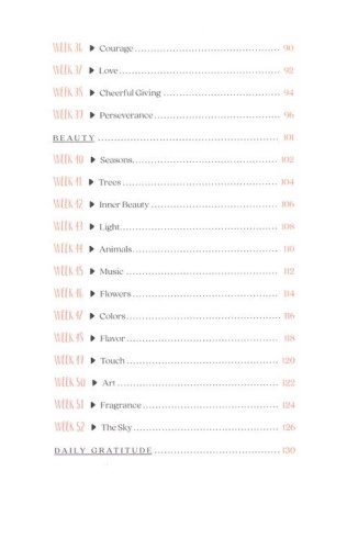 With its lovely full-color photographs and illustrations, this textured hardcover book is a perfect keepsake. The weekly format offers just the right amount of encouragement to inspire, motivate, and create a grateful heart in all who write in its pages.