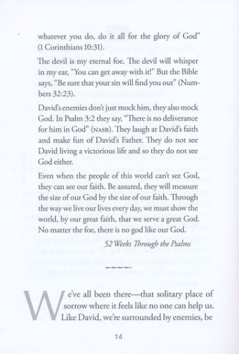 With recommended verses to read, a snippet from the companion book 52 Weeks Through the Psalms, and a devotion centered on that week's theme, you'll find each entry includes plenty to ponderand much to inspire spiritual growth in your life. Alongside Dr. James Merritt, you'll discover that psalms are more than songs to be sung or music to be played but truth to be heard and learned.
