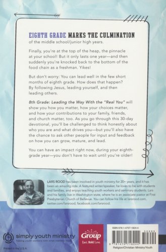 8th Grade: Leading the Way With the "Real You" gives you an opportunity to help teenagers recognize that they matter, their choices matter, and their contributions to their families, friends, and churches matter, too. This devotional will include places for students to think deep about who they are and what makes them tick, but it will also push them to ask other people for input and feedback on growing, maturing, and leading.