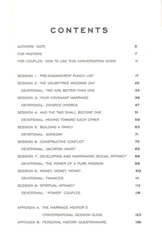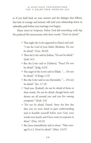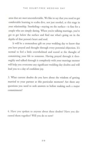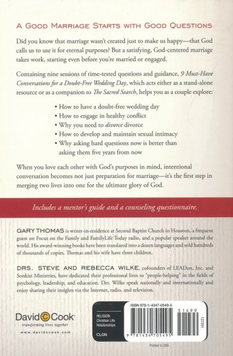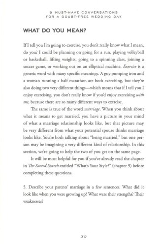 With nine sessions of time-tested questions and guidance, 9 Must-Have Conversations for a Doubt-Free Wedding Day, which acts either as a stand-alone resource or as a companion to The Sacred Search, helps you as a couple explore: