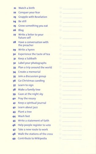 Each entry provides a description of the activity, what the reader can expect to gain from it, and how much of a time commitment it will require. Blank space is included to record memories of and thoughts about the experience.