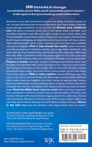 Kathleen Long Bostrom and Peter Graystone provide the ultimate to do list: ninety-nine things that everyone should experience during their time on earth. From the sublime (watch the sun rise), to the wonderfully silly (ride a roller-coaster!), the activities presented will breathe new life into readers' lives while opening them up to new spiritual experiences.