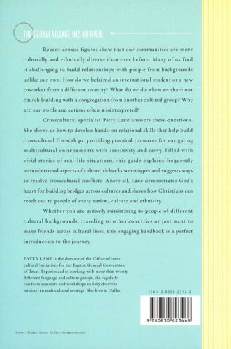 The global village has arrived. Recent census figures show that communities in the United States are more culturally and ethnically diverse than ever before. And you may be just one of many who find it challenging to build relationships with people from backgrounds unlike your own. How do you befriend an international student or a new coworker from a different country? What can you expect when your church building is shared with a congregation from another cultural group? Why are your words and actions sometimes misinterpreted by others? Crosscultural specialist Patty Lane answers these questions and more. She shows you how to develop hands-on relational skills that build crosscultural friendships. And she provides practical resources to help you navigate multicultural environments with sensitivity and savvy. Filled with vivid stories of real-life situations, her helpful guidebook explains frequently misunderstood aspects of culture, debunks stereotypes and suggests ways to resolve crosscultural conflicts. Above all, Lane demonstrates God's heart for building bridges across cultures and shows how you can reach out to people of every nation, culture and ethnicity. Whether you are actively ministering to people of different cultural backgrounds, traveling to other countries for your business or simply want to make friends across cultural lines, this engaging handbook is a perfect introduction to the journey.