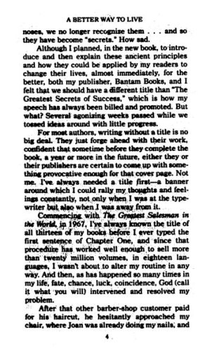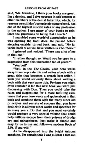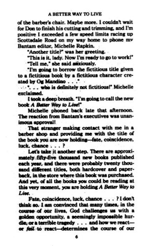 These simple, easy-to-follow rules comprise a sound, wise prescription for inner growth and for a fulfilling everyday life that will work for you—just as it worked for Og Mandino. You can avoid spending even one more day feeling failure, grief, poverty, shame, or self-pity. Here is a better way to live: a way that literally saved Og Mandino’s life, a way that can help make your dreams come true.