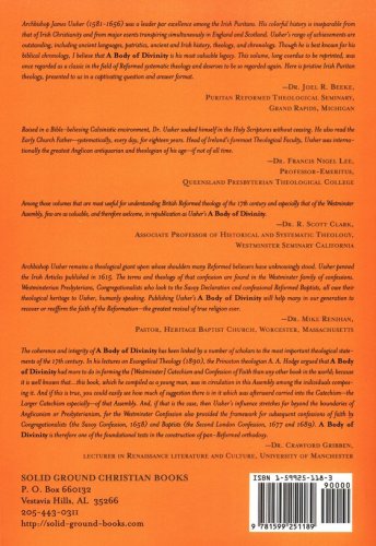 "Archbishop James Ussher (1581-1656) was a leader par excellence among the Irish Puritans. His colorful history is inseparable from that of Irish Christianity and from major events transpiring simultaneously in England and Scotland. Ussher's range of achievements are outstanding, including ancient languages, patristics, ancient and Irish history, theology, and chronology. Though he is best known for his biblical chronology, I believe that his Body of Divinity is his most valuable legacy. This volume, long overdue to be reprinted, was once regarded as a classic in the field of Reformed systematic theology and deserves to be so regarded again. Here is pristine Irish Puritan theology, presented to us in a captivating question and answer format." –Joel R. Beeke, Puritan Reformed Theological Seminary, Grand Rapids, Michigan