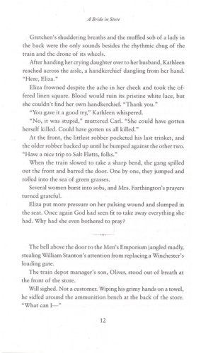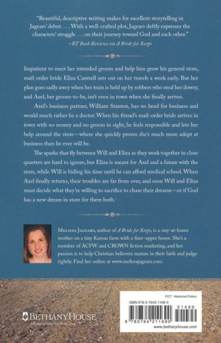 Impatient to meet her intended groom and help him grow his general store, mail-order bride Eliza Cantrell sets out on her travels a week early. But her plan goes sadly awry when her train is held up by robbers who steal her dowry and Axel, her groom-to-be, isn't even in town when she finally arrives.