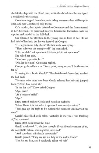 What he ends up with is a wife–a feisty redhead who claims she is Lady Constance Morrow, daughter of an Earl, brought to America against her will. And she wants to go straight back to England as soon as she can. She hasn't the foggiest notion how to cook, dares to argue with her poor husband, and spends more time working on mathematical equations than housework. What kind of a wife is that? Drew's Christian forbearance is in for some testing.