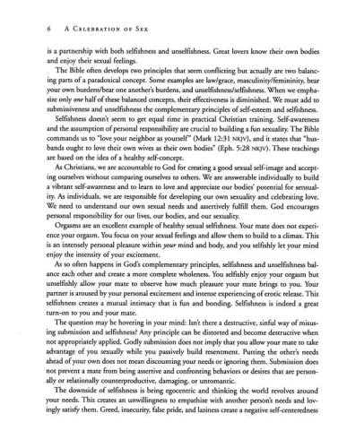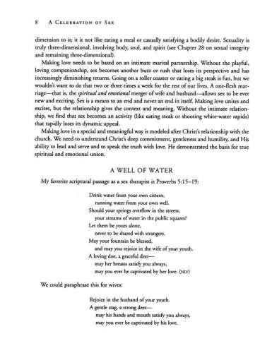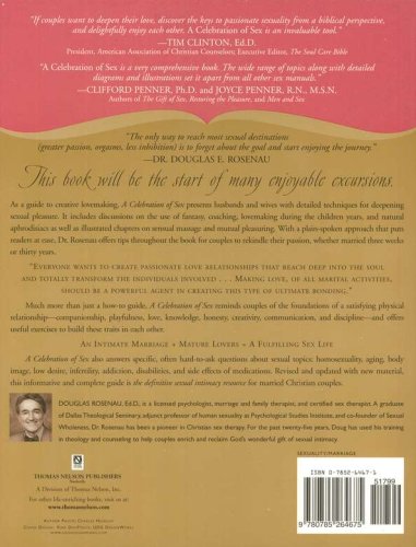A Celebration of Sex answers specific, often unasked questions about sexual topics, presents married couples with detailed techniques and behavioral skills for deepening sexual pleasure and intimate companionship, and is an excellent tool for premarital education.