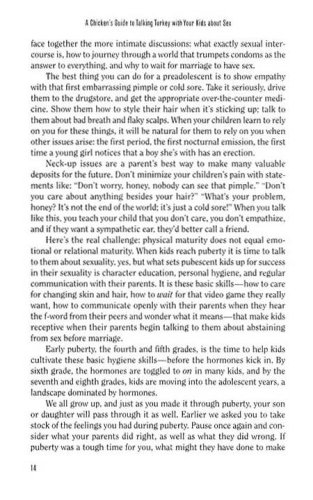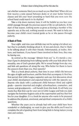 Parents Often Imagine Their Kids to be Nonsexual Until Their Wedding Night The truth of the matter is that we’re sexual from day one. What are you going to communicate to your kids about this, knowing that they are sexual creatures today? Your kids need you to talk with them about sex. No one else will do. They’ve been discovering their sexuality since the day they were born, but they need you to help them deal with the changes and challenges of puberty. Those conversations that are so vital for your children’s health and happiness don’t have to be difficult if you’re prepared. A Chicken’s Guide to Talking Turkey with Your Kids about Sex helps you build a strong, trust-filled relationship with your son or daughter to prepare you for the intimate talks you need to have when "the changes" hit. And because every child grows in a unique way, this book tells you what to teach but lets you determine when. Inside this book are the tools you need to help your kids not only understand their growing bodies, but also cope with the temptations and social pressures that go with them. Practical, expert, and down-to-earth, A Chicken’s Guide is a powerful resource not only for moms and dads, but also for pastors, counselors, and anyone with a heart for kids.