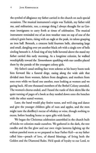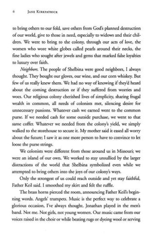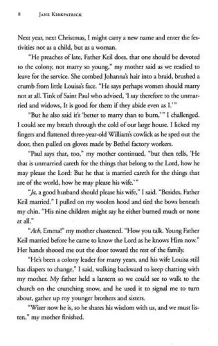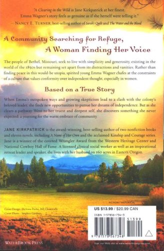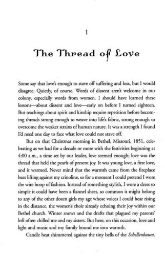 Young Emma Wagner chafes at the constraints of Bethel colony, an 1850s religious community in Missouri that is determined to remain untainted by the concerns of the world. A passionate and independent thinker, she resents the limitations placed on women, who are expected to serve in quiet submission. In a community where dissent of any form is discouraged, Emma finds it difficult to rein in her tongue–and often doesn’t even try to do so, fueling the animosity between her and the colony’s charismatic and increasingly autocratic leader, Wilhelm Keil.