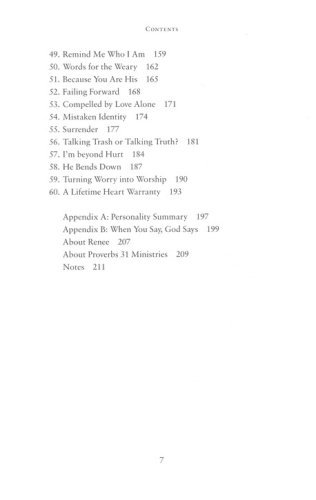 Like having a conversation with a friend and mentor, Renee's authentic style and soul-stirring devotions include personal stories, powerful biblical teaching, and real-life application wrapped around one of God's promises each day to help readers: