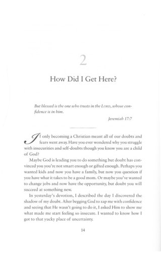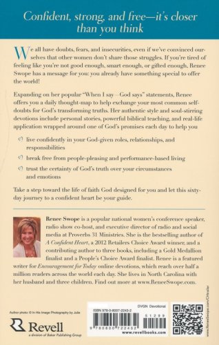 Built on the hope-infusing truths found in the 2012 Retailer's Choice Winner, A Confident Heart, Renee Swope's new 60-day devotional takes women on a journey toward lasting confidence. Swope has expanded her popular "When I say–God says" statements and Scriptures, and offers women a daily thought-map to help them exchange their most common and crippling self-doubts with God's transforming truths.