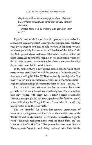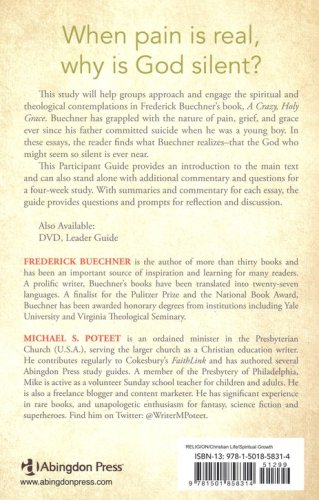 This Bible study, based on acclaimed author Frederick Buechner’s book A Crazy, Holy Grace, examines his collection of essays on pain, loss, and the healing power of memories. Participants will explore God’s tender grace and learn how to be stewards of the pain in our lives. In addition, participants will cover such topics as the power of hidden secrets, loss of a dearly beloved, letting go, resurrection from the ruins, peace, and listening for the quiet voice of God.