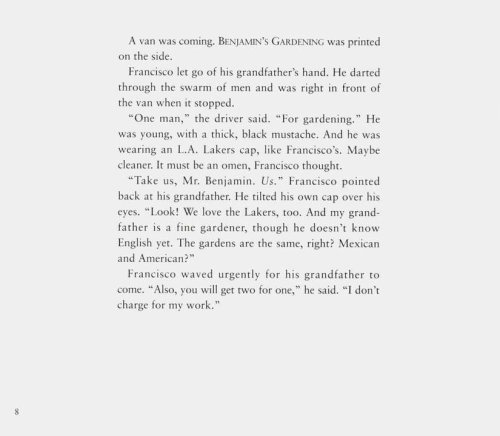 Francisco, a young Mexican-American boy, doesn't know how to connect with his grandfather who doesn't doesn't speak English. But when the opportunity to help his grandfather find a job comes along, Francisco helps his grandfather learn about gardening. They get to learn about gardening, and each other, along the way.