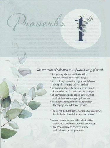 A Devotional Journey through Proverbs' full-color design on every spread, will invite you to learn the wisdom of Solomon and experience a life blessed by God's favor. As you walk through beautifully illustrated pages with the full Bible text, a devotional reading, additional insights and word studies, and reflection questions, you will find practical guidance for everyday living.