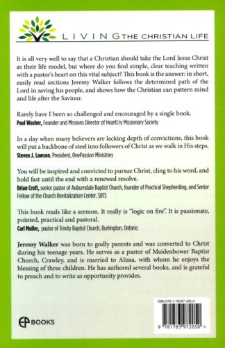It is all very well to say that a Christian should take the Lord Jesus Christ as their life model, but where do you find simple, clear teaching written with a pastor’s heart on this vital subject? This book is the answer: in short, easily read sections Jeremy Walker follows the determined path of the Lord in saving his people, and shows how the Christian can pattern mind and life after the Saviour. The brevity of this work betrays its significance. Rarely have I been so challenged and encouraged by a single book. It is demanding and convicting, and yet instructive and hopeful. Like a compass, it turns the reader back to the heart of true discipleship. Initially, it deserves multiple readings, and then, it should be read once a year to help the believer maintain the course. Paul Washer, Founder and Missions Director of HeartCry Missionary Society