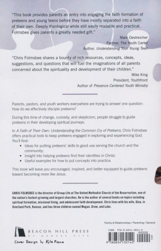 During this time of change, curiosity, and skepticism, people struggle to guide preteens in their developing spiritual journeys. In A Faith of Their Own: Understanding the Common Cry of Preteens Chris Folmsbee offers practical tools to keep preteens engaged in exploring and experiencing God. You'll find:Ideas for putting preteens' skills to good use serving the church and the communityInsight into helping preteens find their identities in ChristUseful examples for how to put concepts in into practiceThis book will leave you encouraged, inspired, and better equipped to guide preteens toward becoming more like Jesus.