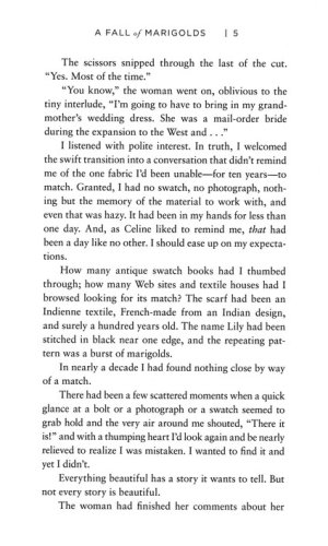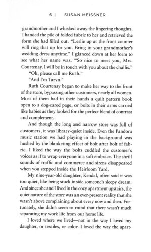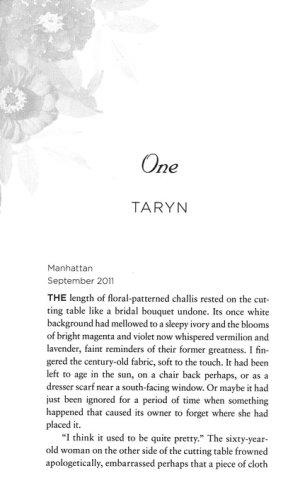 September 2011. On Manhattan’s Upper West Side, widow Taryn Michaels has convinced herself that she is living fully, working in a charming specialty fabric store and raising her daughter alone. Then a long-lost photograph appears in a national magazine, and she is forced to relive the terrible day her husband died in the collapse of the World Trade Towers…the same day a stranger reached out and saved her. But a chance reconnection and a century-old scarf may open Taryn’s eyes to the larger forces at work in her life.