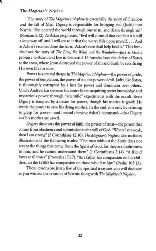 This book serves as a simple and practical companion to The Chronicles of Narnia for those who want to discover its biblical and Christian roots and quickly locate the Scriptural references that abound in Lewis' work.