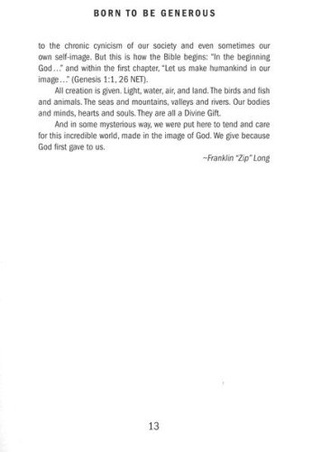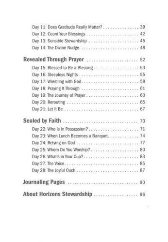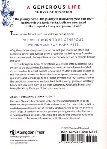 Not only are humans born to be generous, we are born in the image of a loving and generous God. And sometimes we need a reminder. These 28 devotionals gathered into four weekly themes, inspire the reader to discover the powerful Christian principles of gratitude, prayer, and faith—leading them back to the generous life they were born to live. The daily readings are written by the diverse group of pastors, business and church leaders, speakers, and authors who make up the Horizons Stewardship Team. Each reading includes scripture, a message containing personal stories and anecdotes, and a challenge to inspire the reader toward the discovery of the powerful Christian principles of gratitude, prayer, and faith—all which will lead them back to the generous life they were born to live.