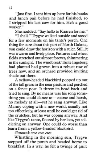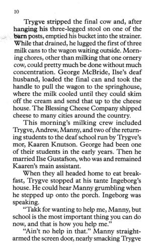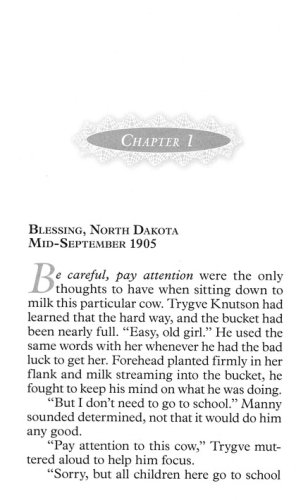 While in Chicago, Miriam has tried to get Trygve Knutson and Blessing out of her mind, but his letters make that impossible. Trygve is busy building a house, hoping he can convince Miriam to return to North Dakota and marry him. Torn between Trygve's love and her family's needs, she doesn't know what to do.