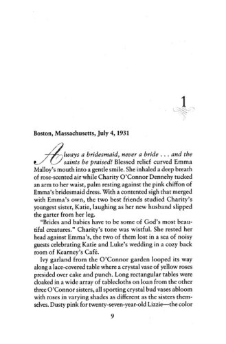 Ten years ago, Emma Malloy fled Dublin for Boston as a battered woman, escaping the husband who scarred her beautiful face. The physical and emotional wounds have faded with time, and her life is finally full of purpose and free from the pain of her past. But when she falls for her friend Charity's handsome and charming brother, Sean O'Connor, fear and shame threaten to destroy her. Could Sean and Emma ever have a future together? Or is Emma doomed to live out the rest of her life denying the only true love she's ever known?