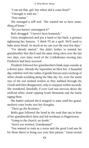 When a band of runaway slaves brings Union-loyal Beth Bumgartner a wounded Confederate soldier named Joe, it is the catalyst that pushes her to defy her pacifist parents and become a nurse during the Battle of Antietam.