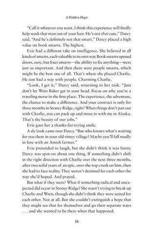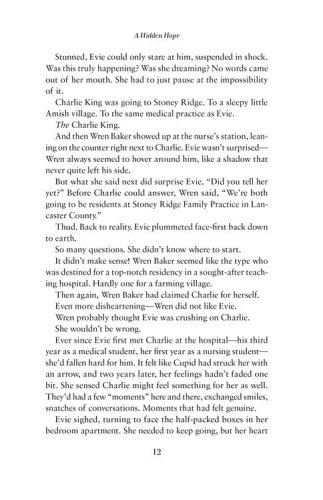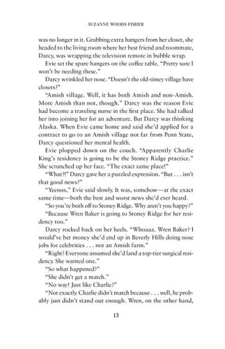 Supervising two newly minted medical residents might be the toughest challenge Ruth "Dok" Stoltzfus has ever faced. Wren Baker, sharp and ambitious, graduated at the top of medical school with a hidden agenda in tow. Charlie King, at the bottom of the class, is determined to succeed–though Dok isn't convinced he's got what it takes. Then there's traveling nurse Evie Miller, whose quiet love for Charlie doesn't go unnoticed, especially by Wren.